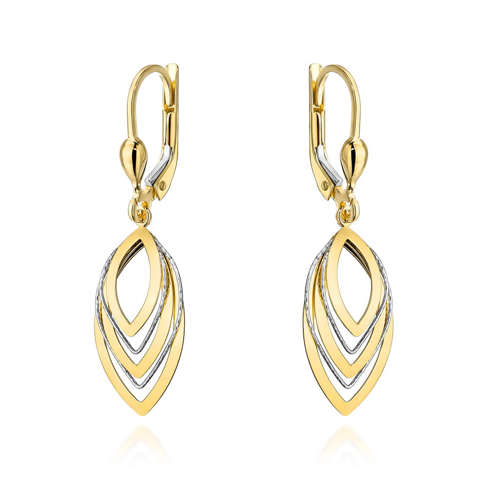 Kolczyki złote listki w dwóch kolorach złota na angielskim zapięciu