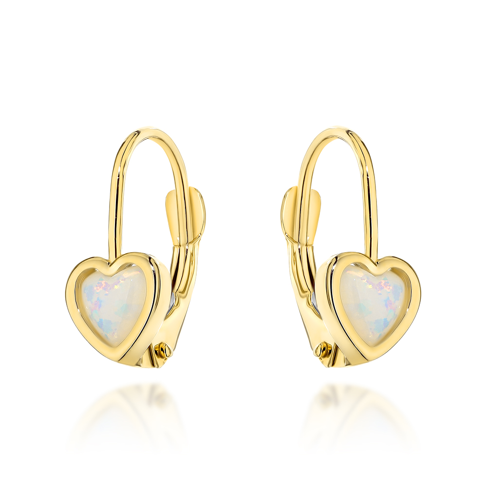 Kolczyki złote serduszka z opalitem na angielskim zapięciu