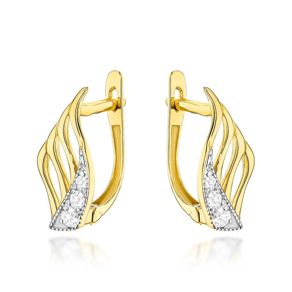 Kolczyki złote skrzydła zdobione cyrkoniami
