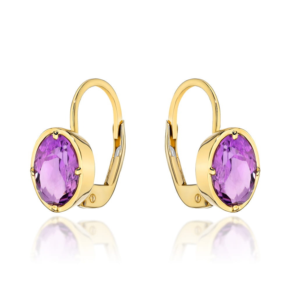 Kolczyki złote z kolekcji „COLORFUL STONE” – ametyst owal