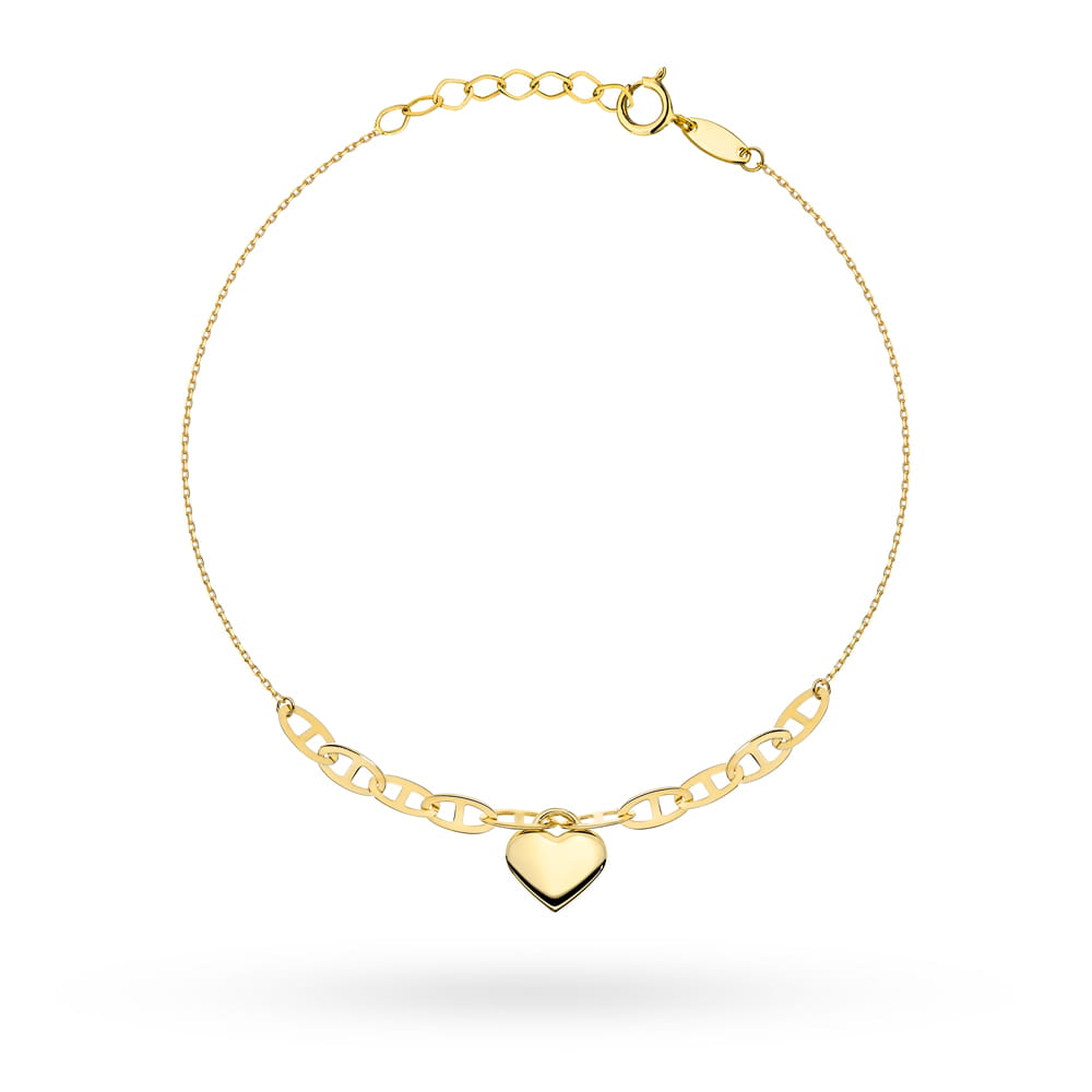 Bransoletka złota z wiszącym serduszkiem i ogniwkami