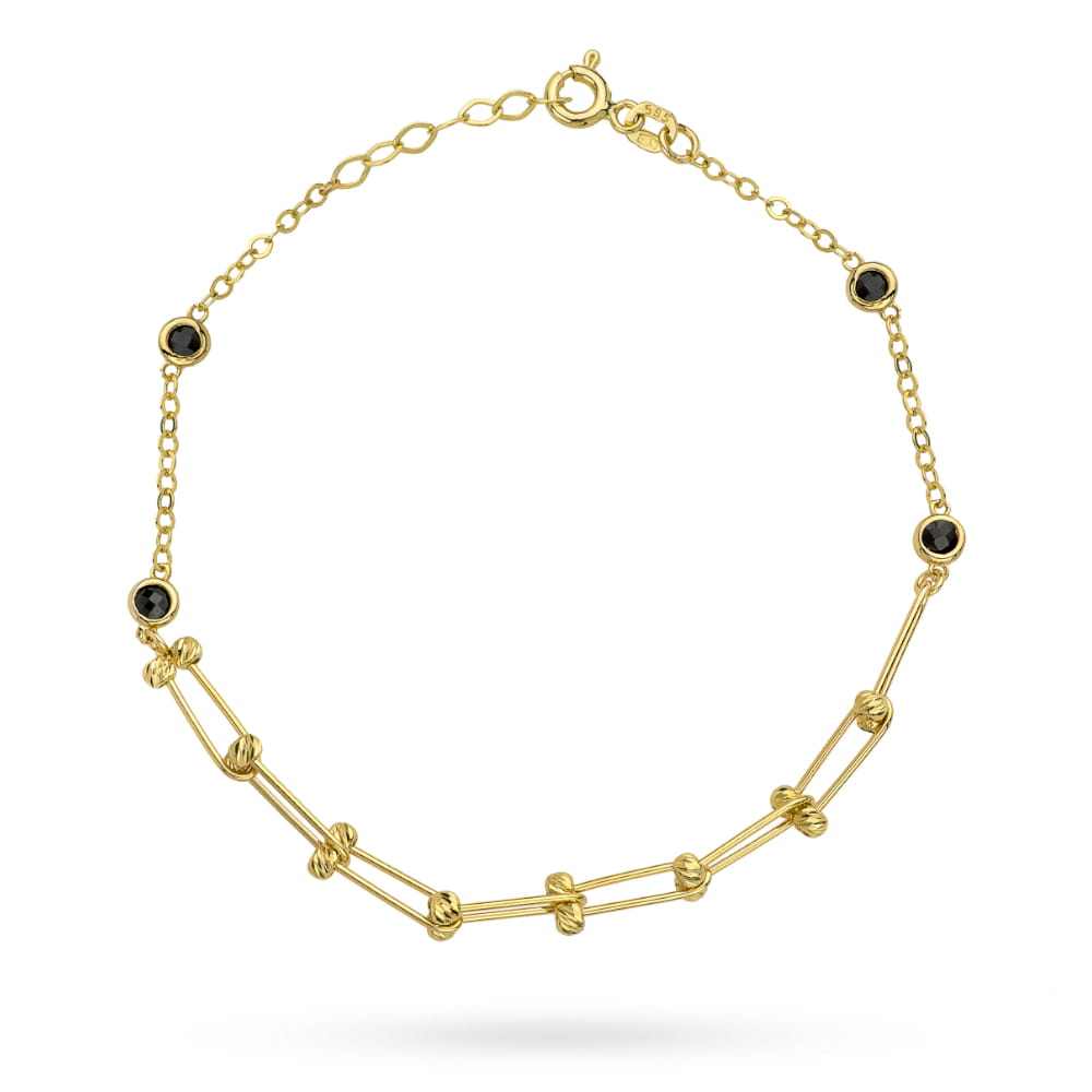 Bransoletka złote splecione diamentowane kulki i czarne kamienie