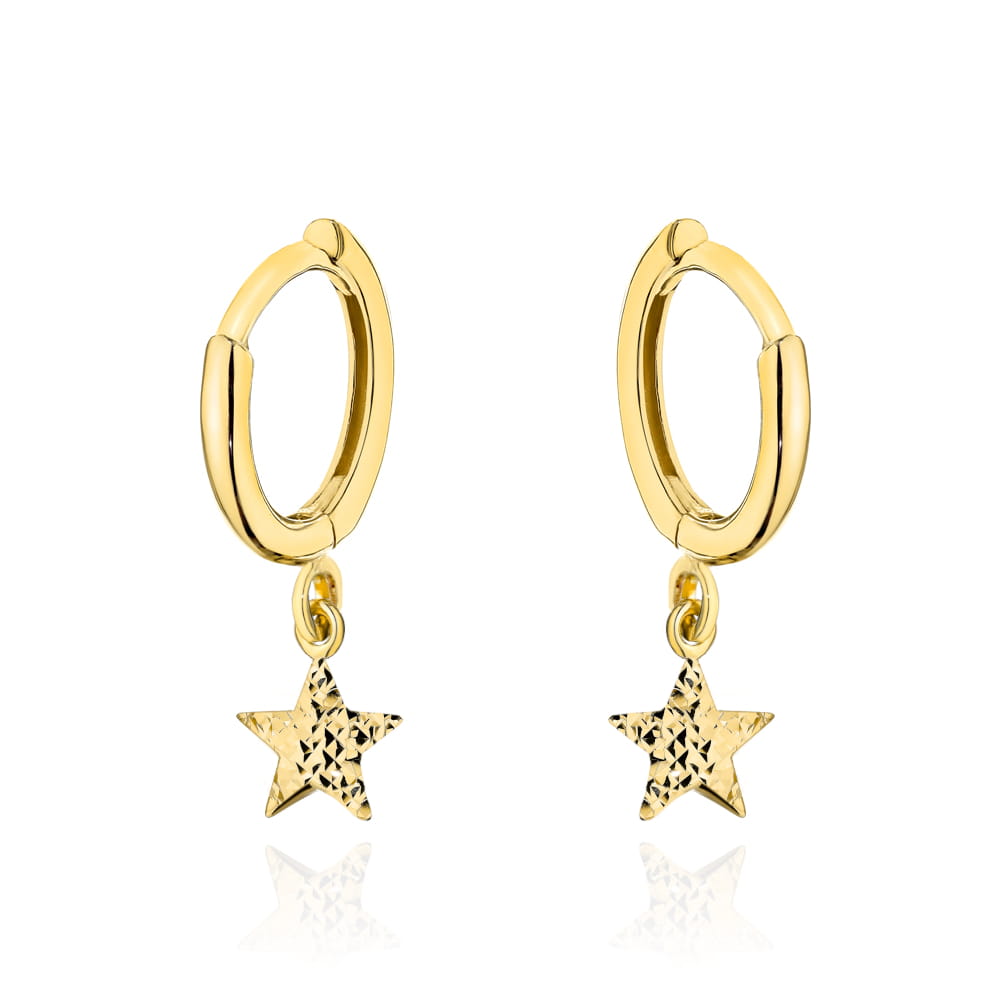 Kolczyki złote kółeczka z jednostronnie diamentowaną gwiazdką