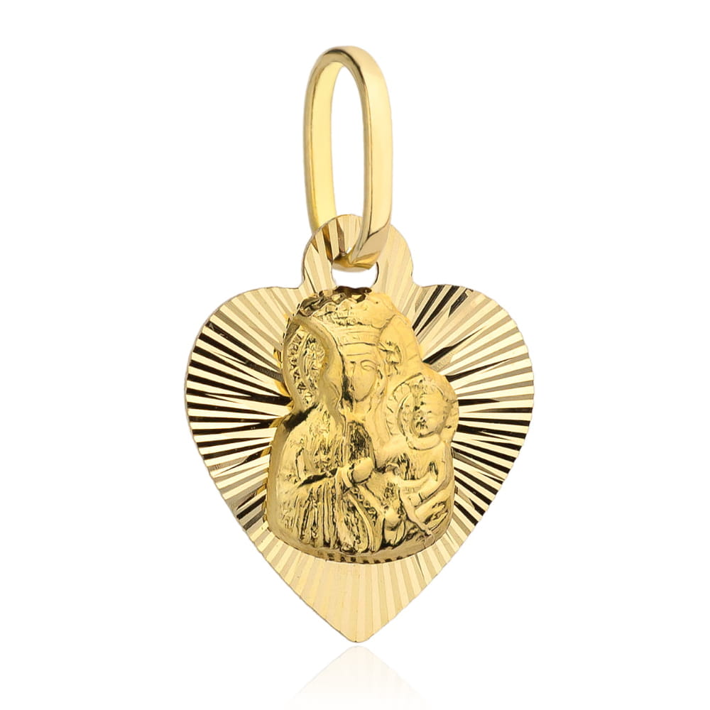 Wyraź swoją wiarę i uczucia poprzez nasz złoty medalik - symbol wiary, nadziei i miłości. Wykonany z najwyższej jakości złota próby 585, emanuje on elegancją i duchowością, stanowiąc jednocześnie piękny dodatek do Twojej biżuterii.