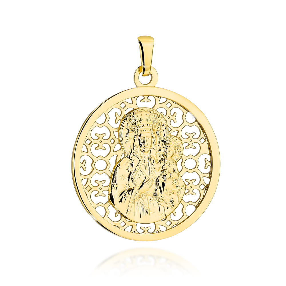 Medalik złoty Matka Boska Częstochowska w ażurowym kole