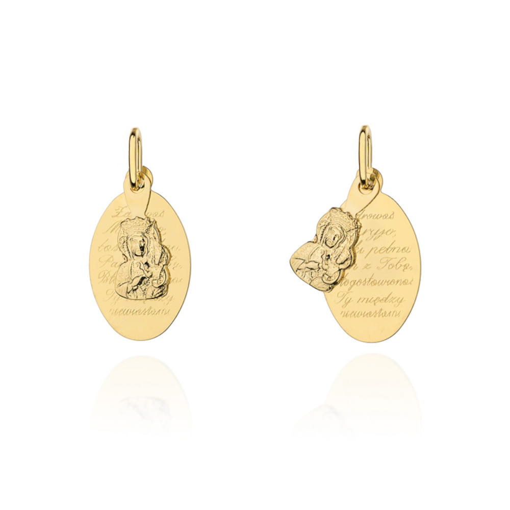 Medalik złoty Matka Boska Częstochowska z modlitwą Zdrowaś Maryjo