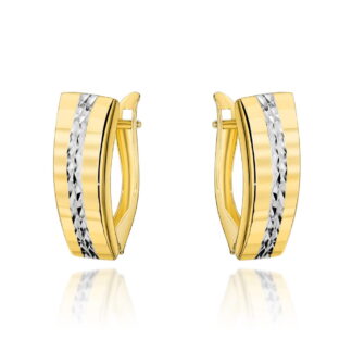 Kolczyki złote z diamentowaniem na środku w dwóch kolorach złota