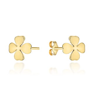 Kolczyki złote gładkie koniczynki na sztyfcie