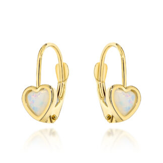 Kolczyki złote serduszka z opalitem na angielskim zapięciu