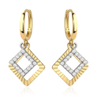 Kolczyki dwa kwadraciki diamentowany i wysadzany cyrkoniami na kreolu