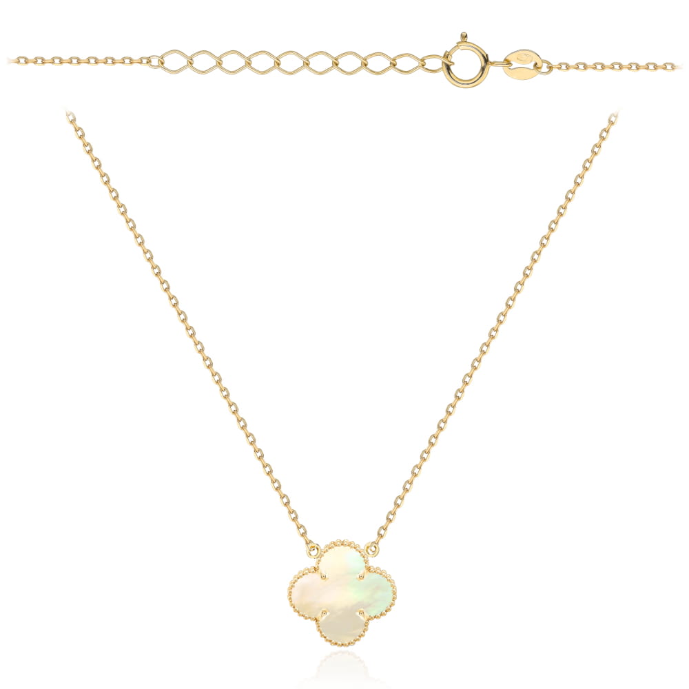 Naszyjnik złoty koniczynka z masą perłową 12mm