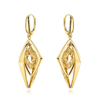 Kolczyki złote potrójne gładkie romby zdobione ażurem