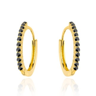Kolczyki złote kółeczka z czarnymi kamieniami