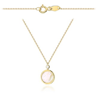 Naszyjnik złoty kółko z masą perłową i cyrkonią