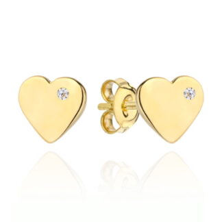 Kolczyki złote serduszko z cyrkonią z boku