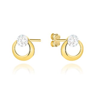 Kolczyki złote z cyrkoniami i zdobieniem na sztyfcie