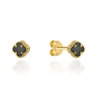 Kolczyki złote z czarną koniczynką 4mm