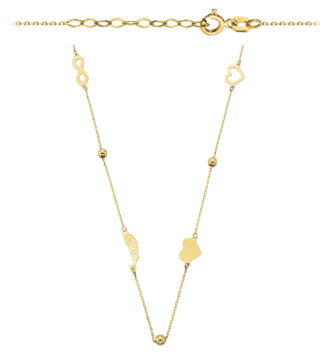 Naszyjnik nieskończoność gładkie kulki, skrzydło Anioła, serca pełne i kontur