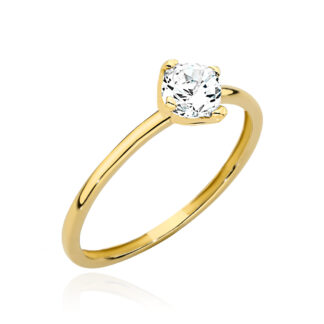 Pierścionek złoty z centralną cyrkonią w czterech łapkach