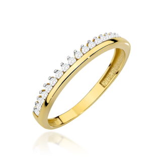 Pierścionek złoty gładka szyna i rząd cyrkonii