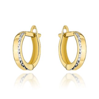 Kolczyki złote małe z diamentowanym paskiem w białym złocie