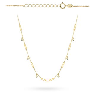 Naszyjnik złoty długie ogniwa i cyrkonie w oprawie złota