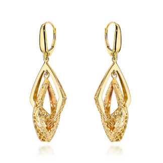 Kolczyki złote podwójne ażurowane romby zdobione diamentowaniem