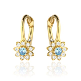 Kolczyki kwiatek niebieska cyrkonia otoczona białymi kamieniami