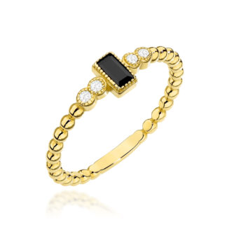 Pierścionek złoty z kuleczek z czarnym kamieniem i cyrkoniami