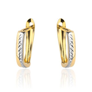 Kolczyki złote z diamentowaniem w dwóch kolorach złota
