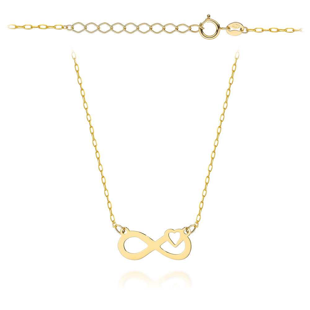 Naszyjnik złoty znak nieskończoności z serduszkiem