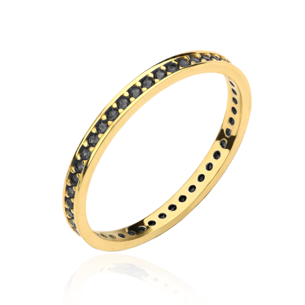 Pierścionek złoty jednorzędówka wysadzana czarnymi kamieniami