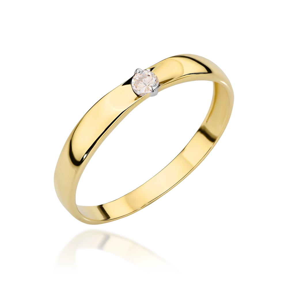 Pierścionek złoty klasyczny z kamieniem w kolorze białym
