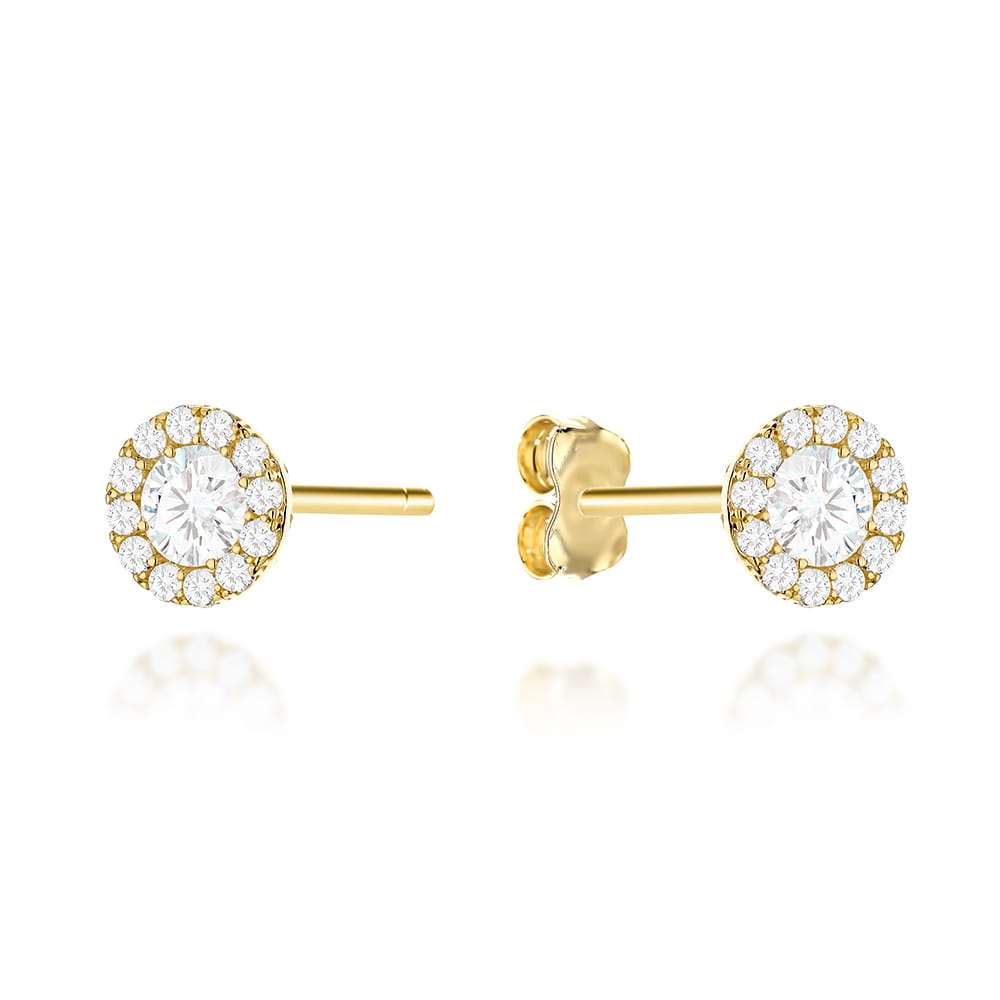 Kolczyki złote kółka wysadzane cyrkoniami z ażurowym tyłem