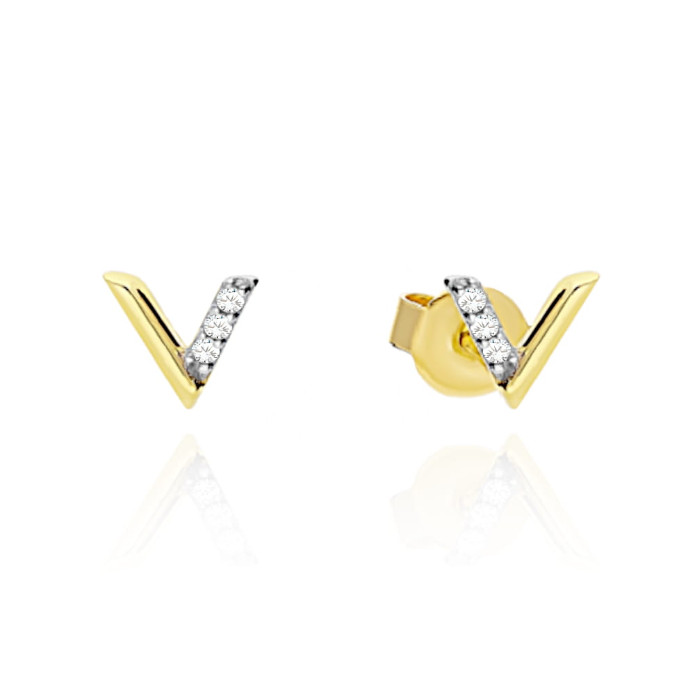 Kolczyki złote literka v z cyrkoniami