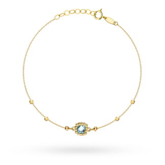 Bransoletka złota z diamentowanymi kulkami i niebieskim kamieniem