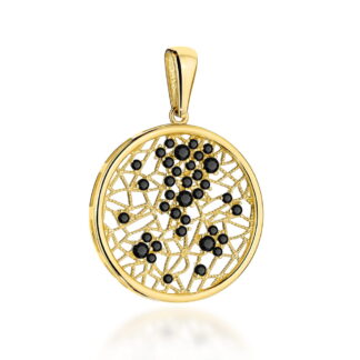 Zawieszka złota ażurowe kółko z czarnymi kamieniami