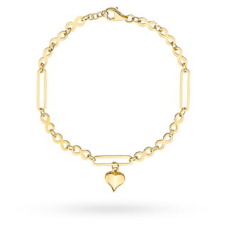 Naszyjnik złoty z diamentowanymi kuleczkami i serce