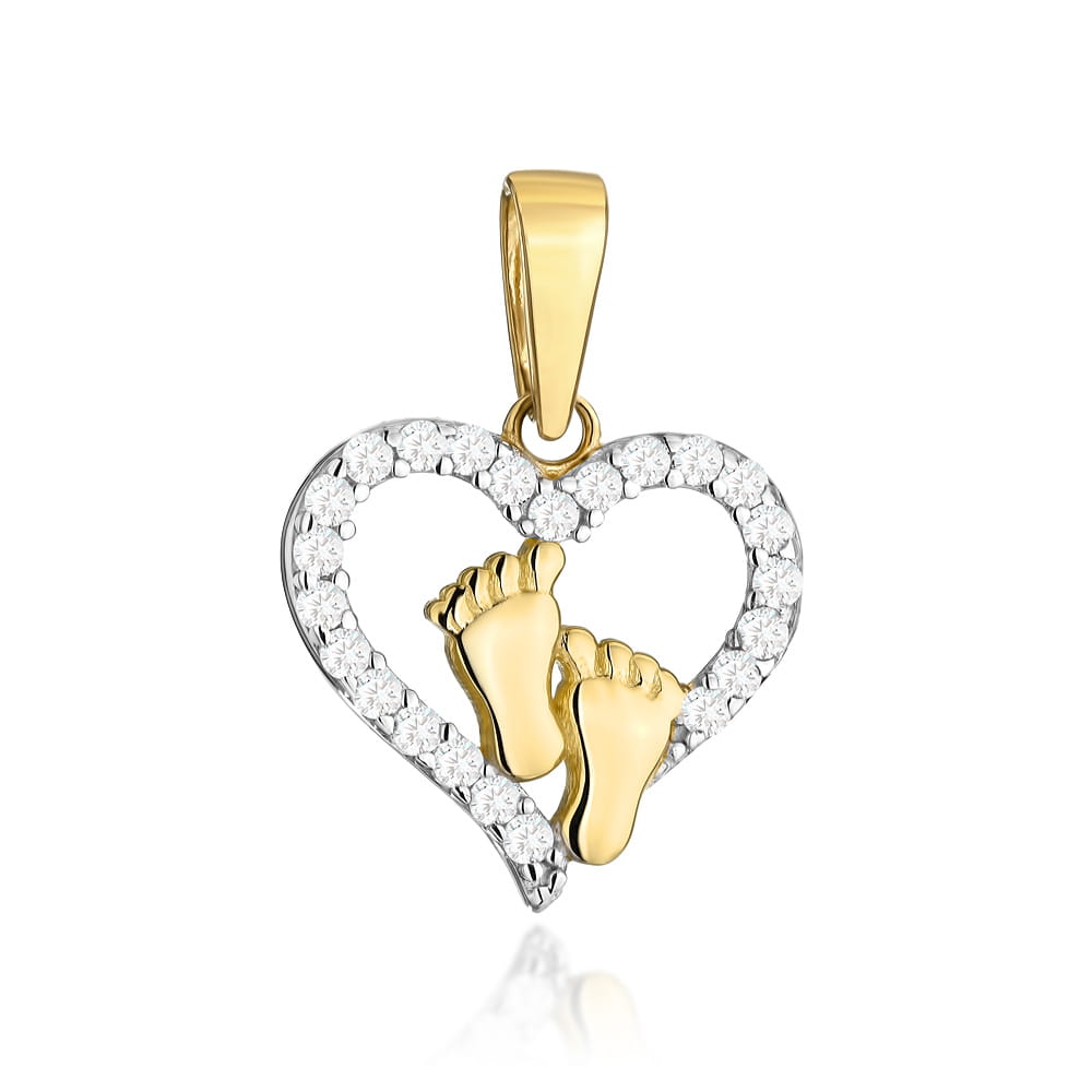 Zawieszka złota serce z cyrkonii i stópki